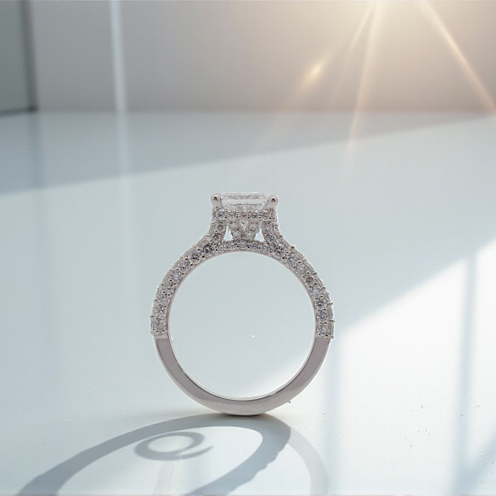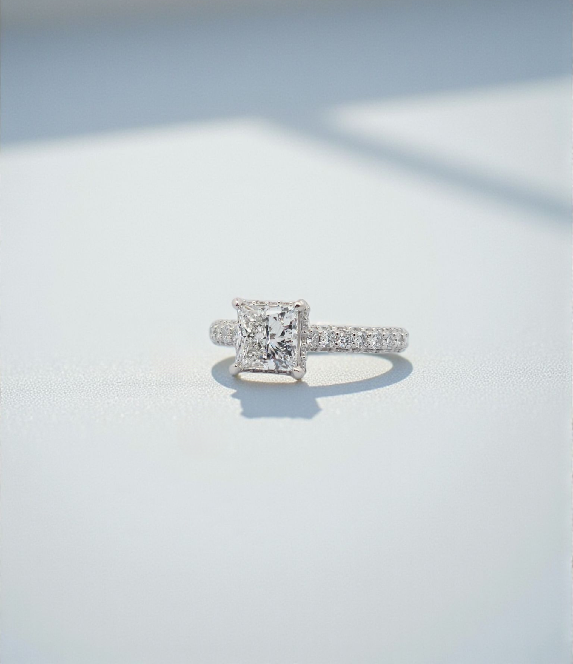 “정교한 사각빛, 프린세스 컷의 절대적인 우아함.”
