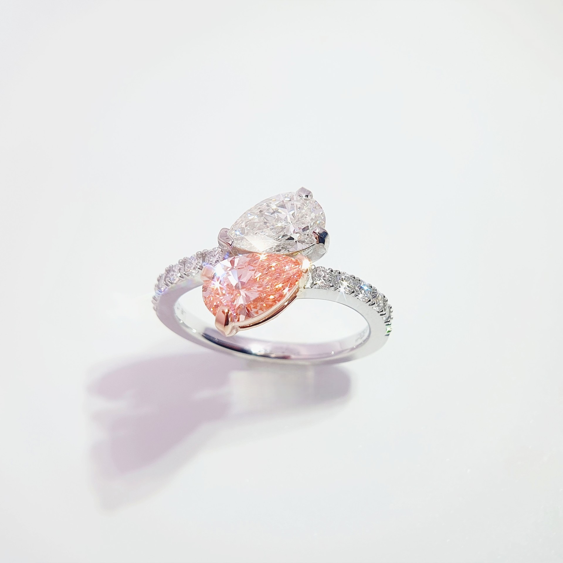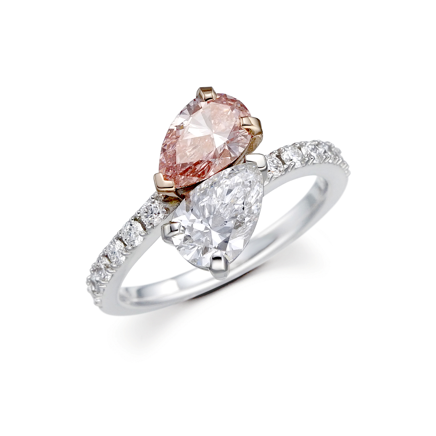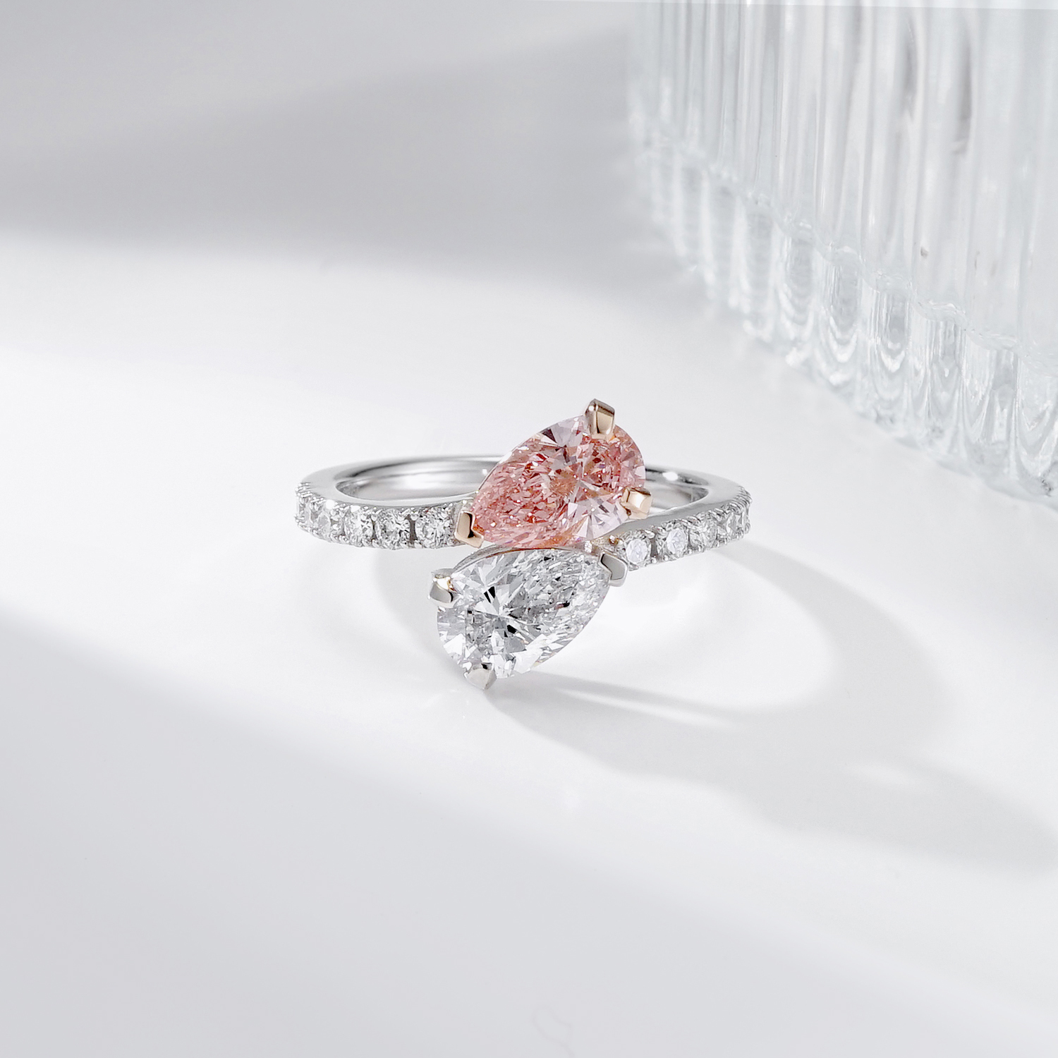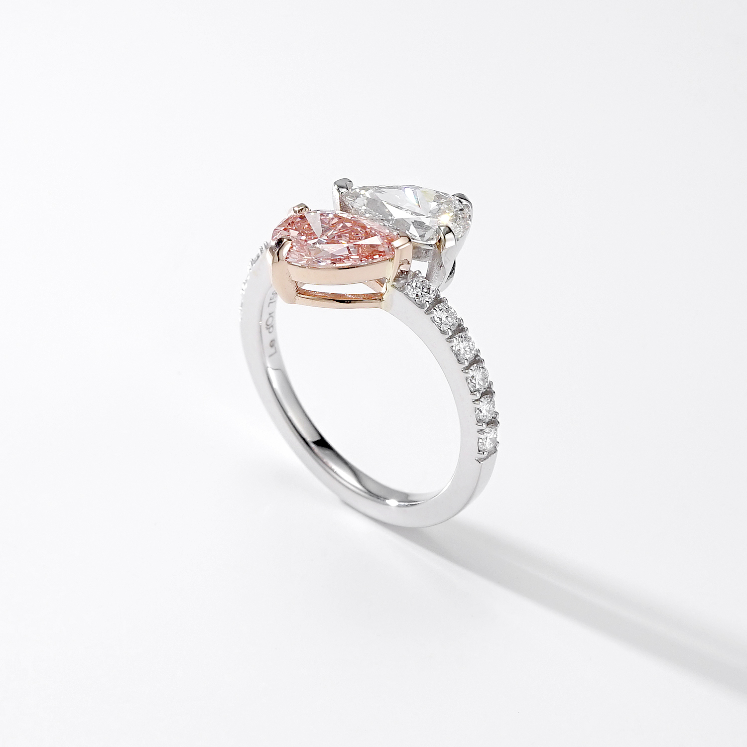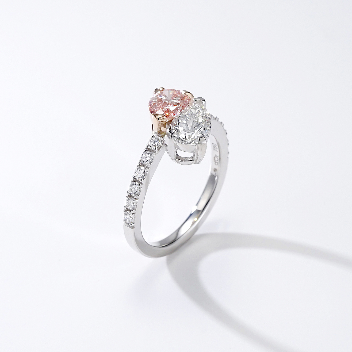 희소성 있는 핑크 랩그로운 다이아몬드와 클래식한 화이트 다이아몬드의 조화는