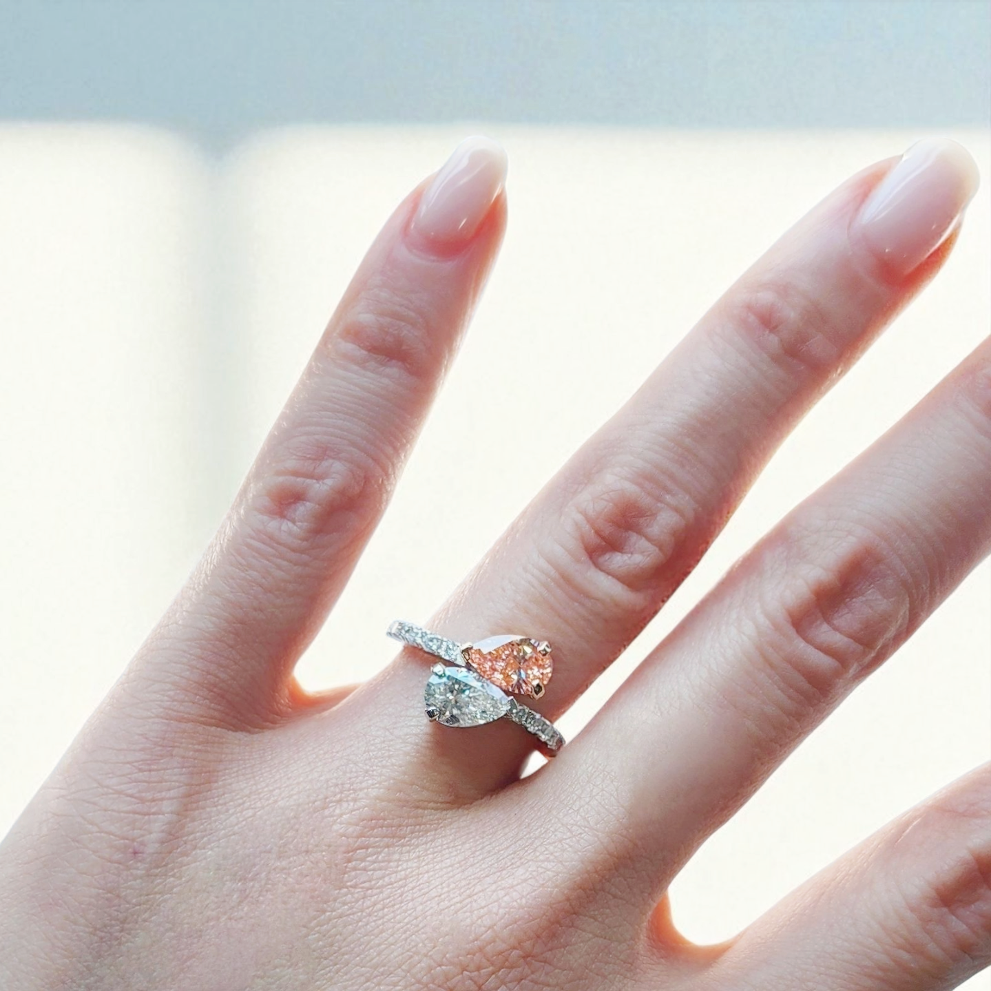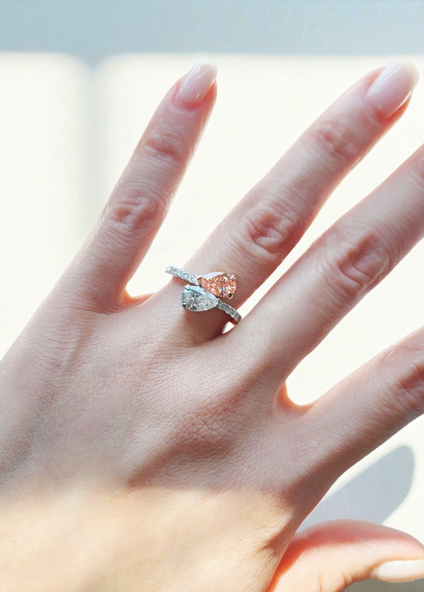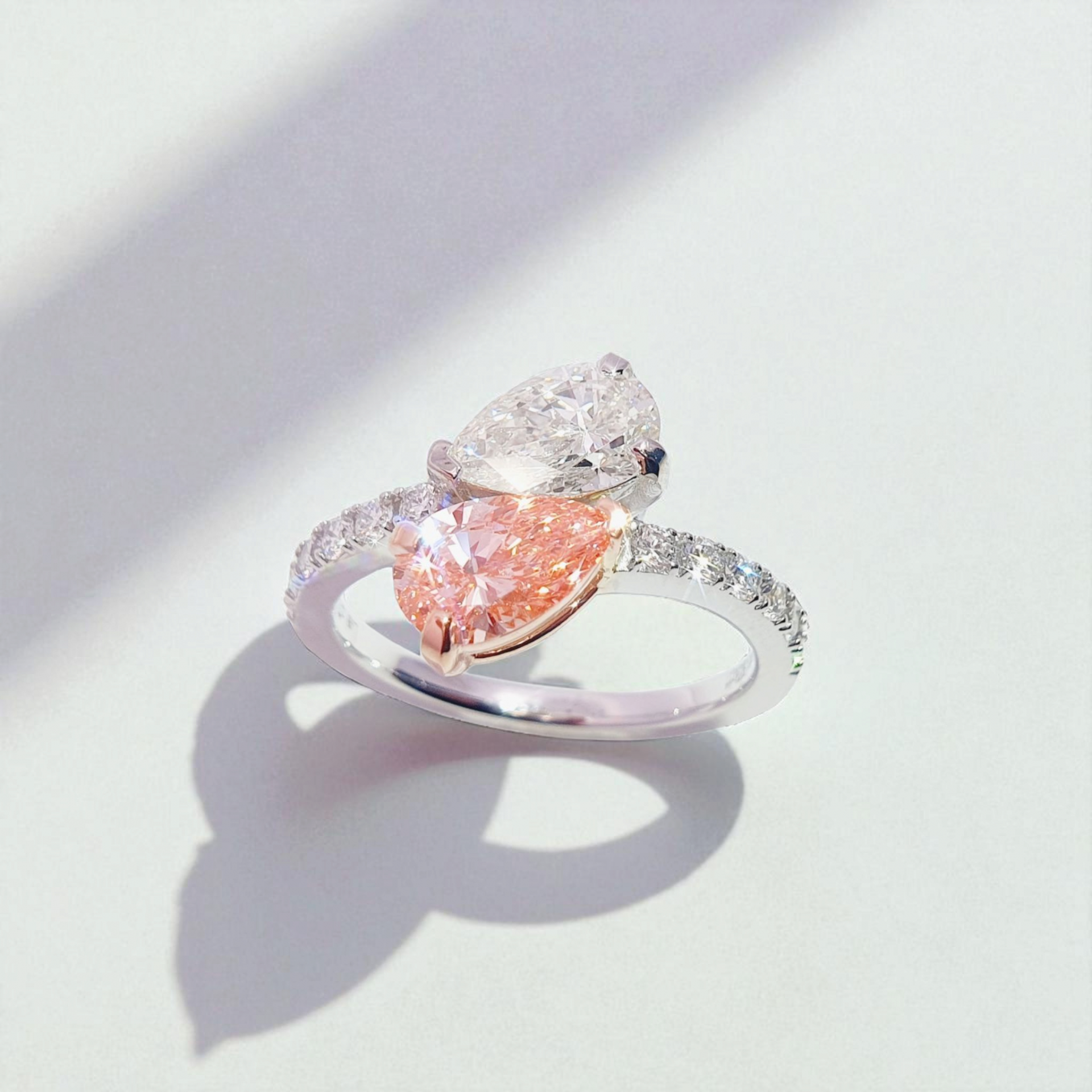 핑크와 화이트 다이아몬드가 맞닿은 이 반지는 영원한 사랑을 의미합니다.