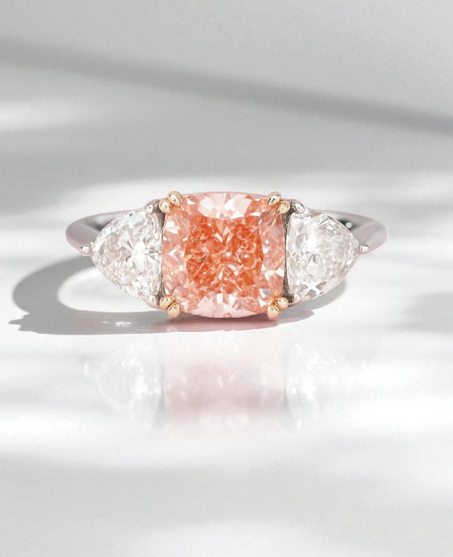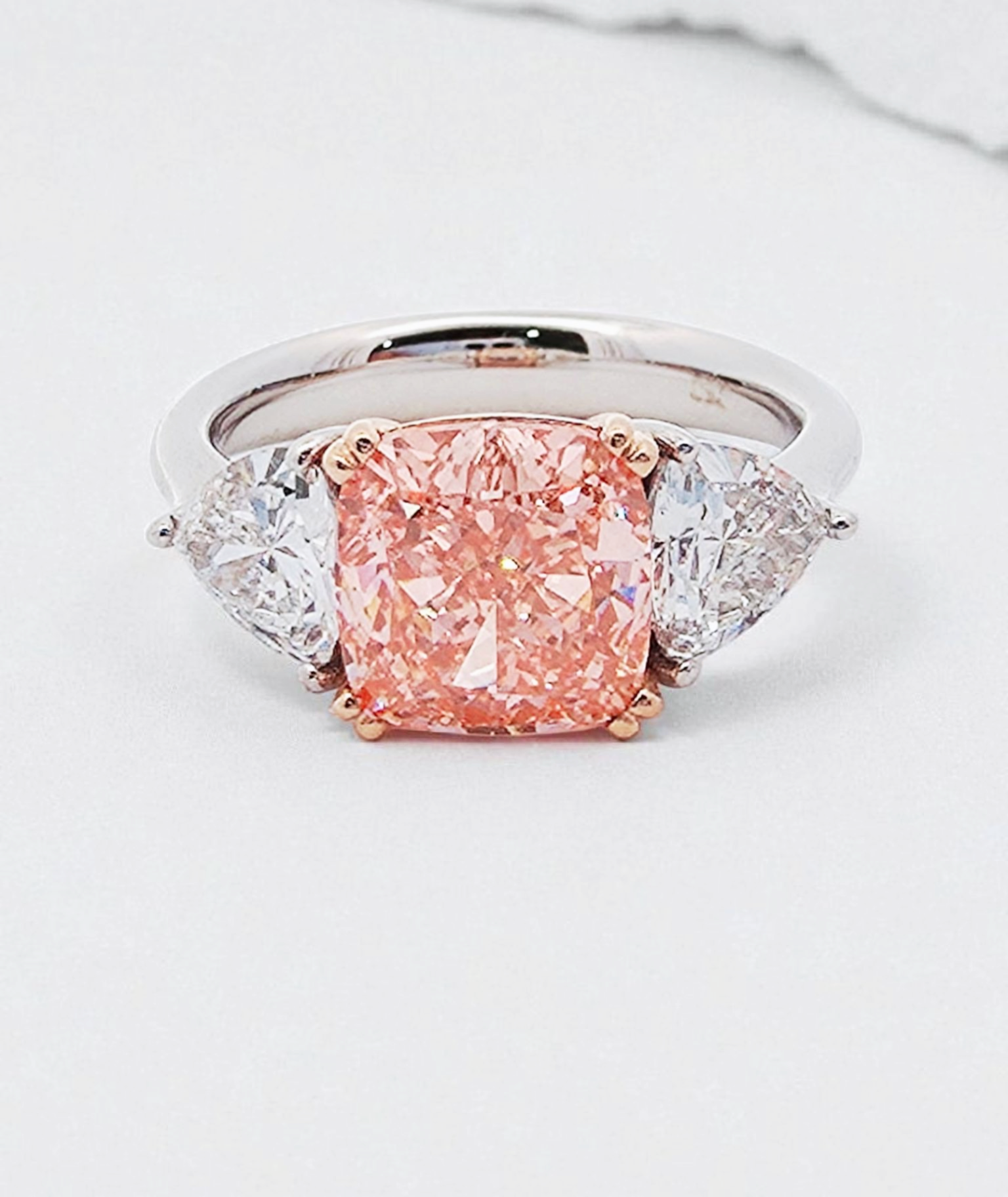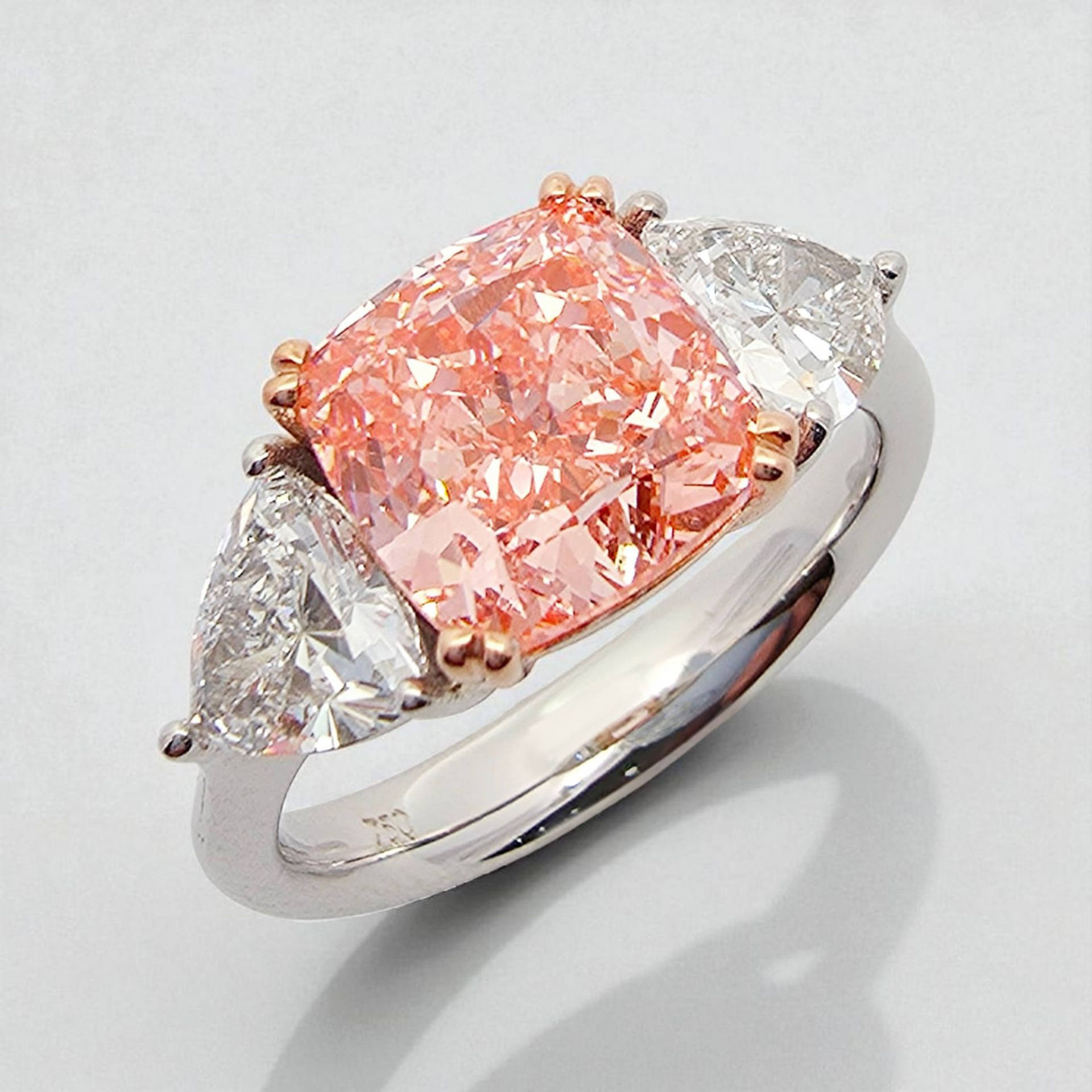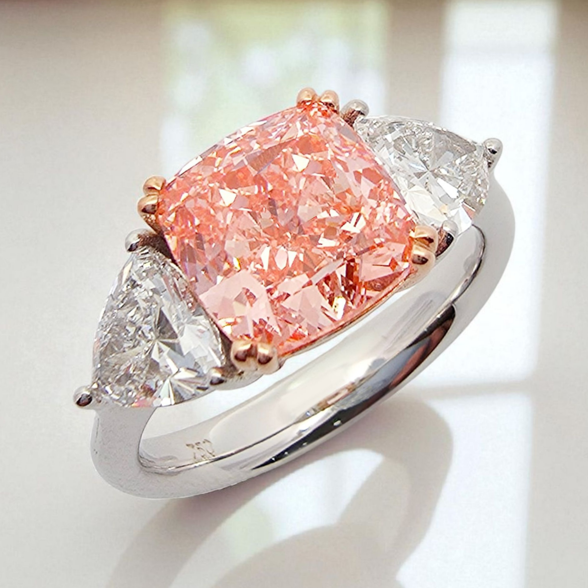 쿠션 컷 핑크 다이아몬드를 중심에 세팅한 프리미엄 링입니다.