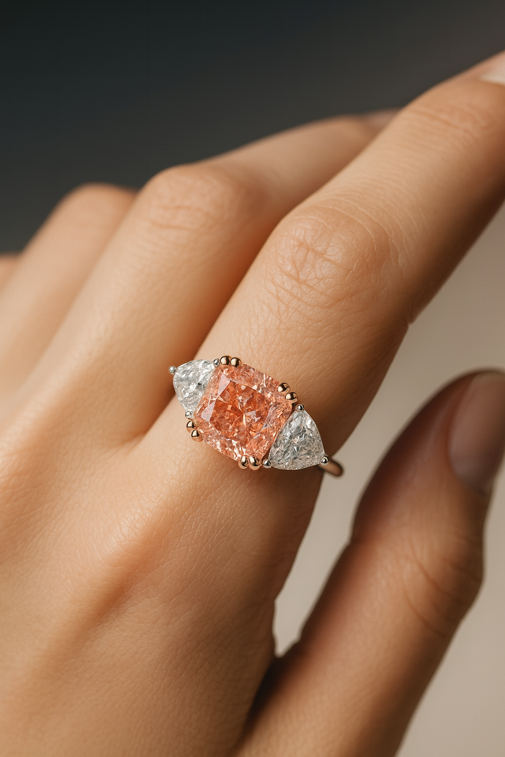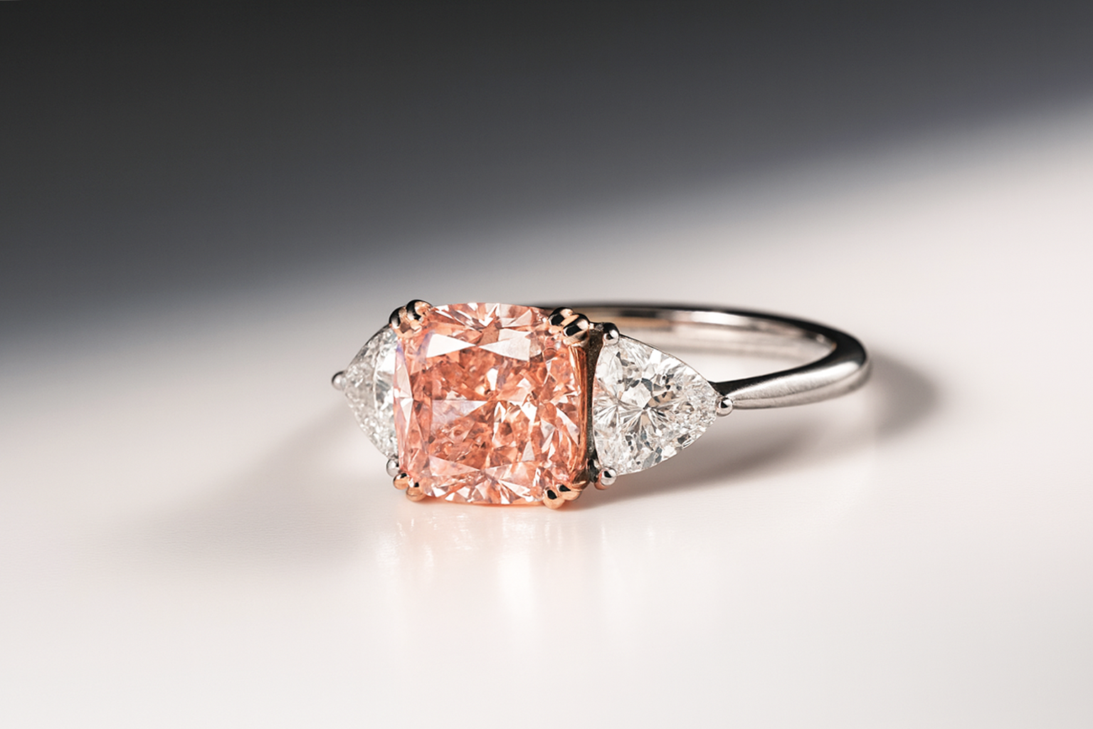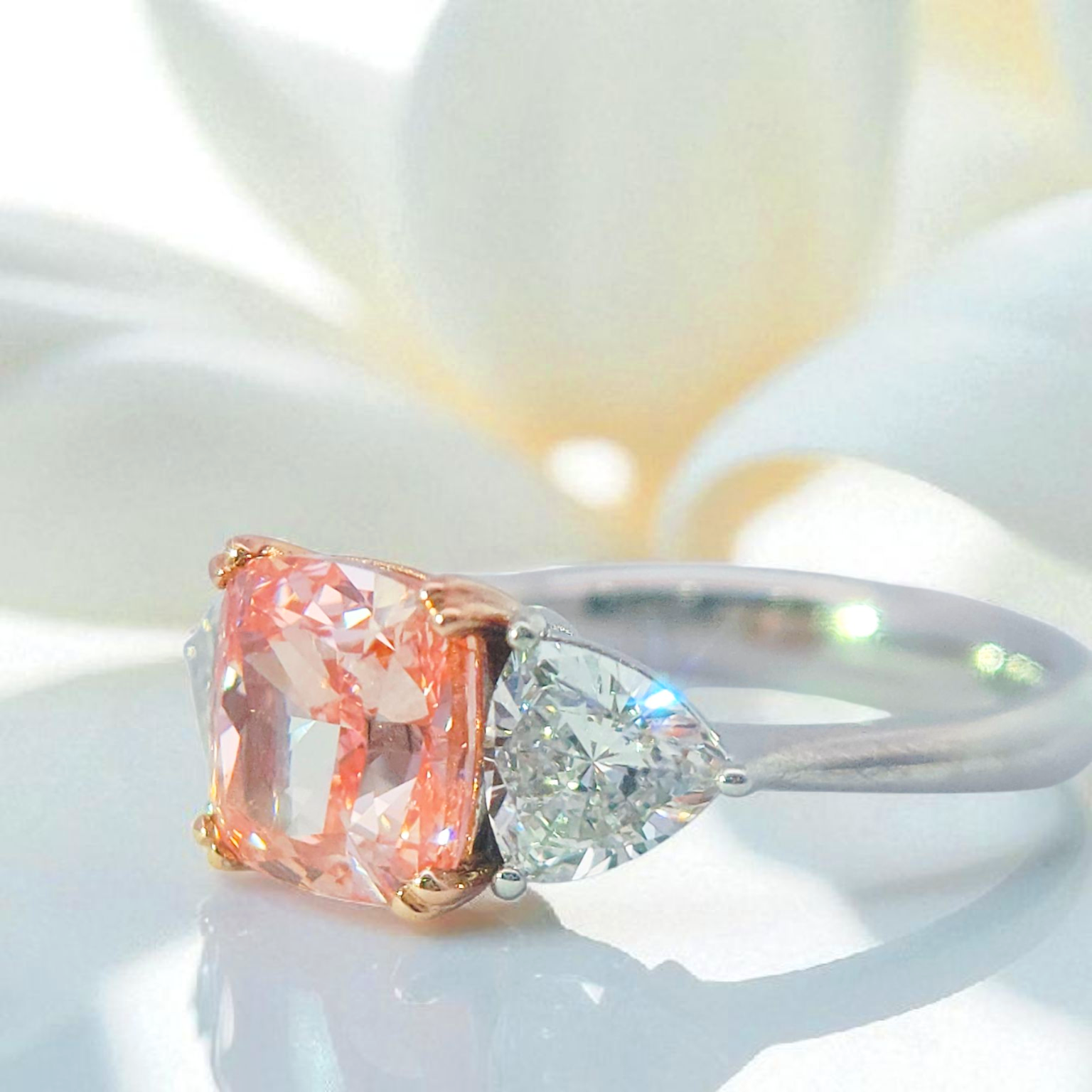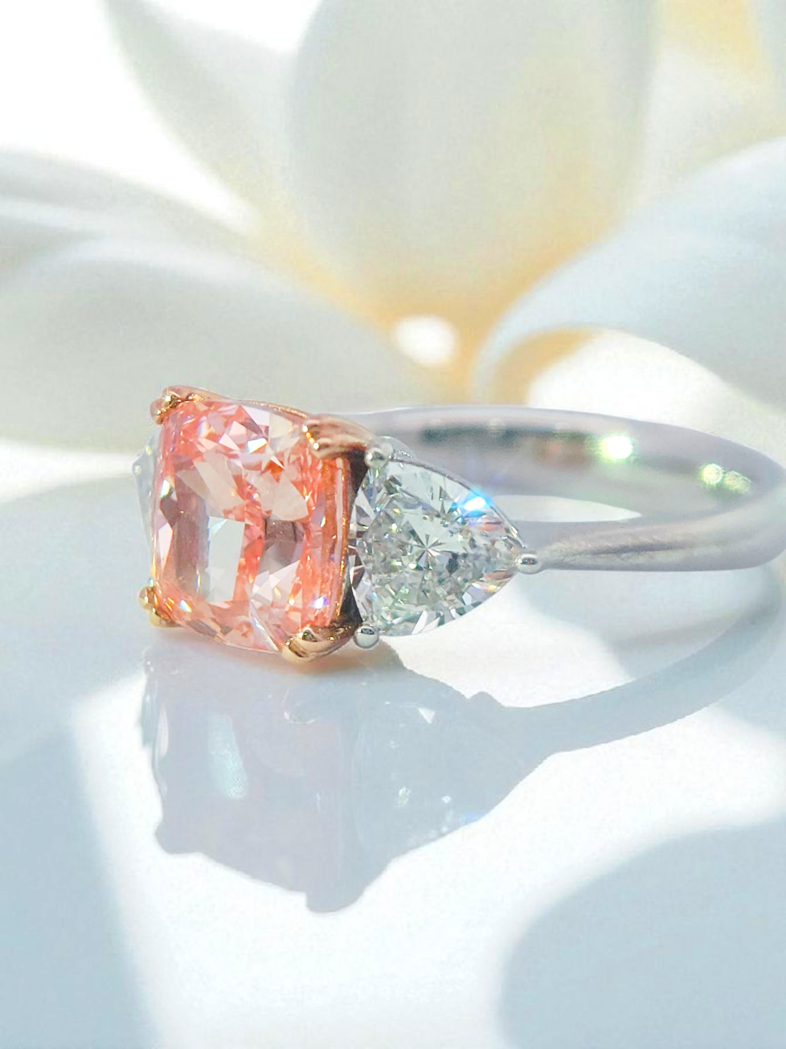 쿠션 컷 핑크 다이아몬드를 중심에 세팅한 프리미엄 링입니다.