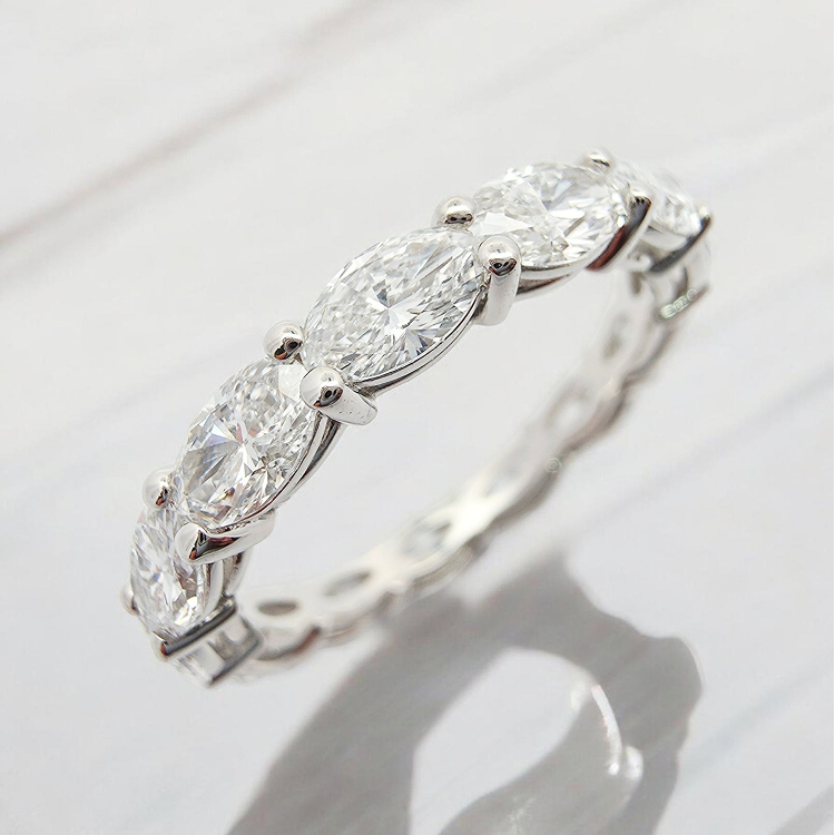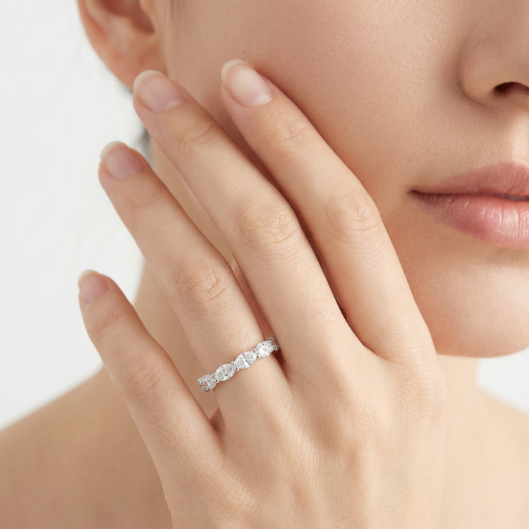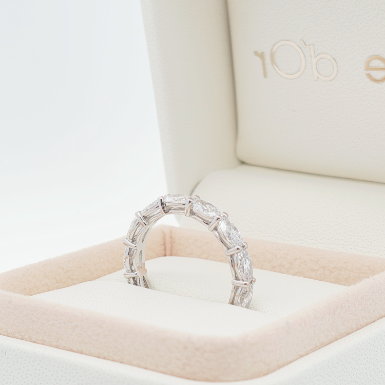잎사귀를 닮은 섬세한 마퀴즈 컷 (Marquise Cut) 스톤을 밴드를 따라 촘촘히 배열하여,